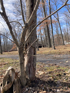 Almost all of our mature ash trees at Lutherlyn (and in much of western Pennsylvania) have died.This is because of the emerald ash borer, an invasive beetle that lays eggs inside the bark of ash trees. When those eggs hatch, the larvae digging their way out of the tree kills the tree.
